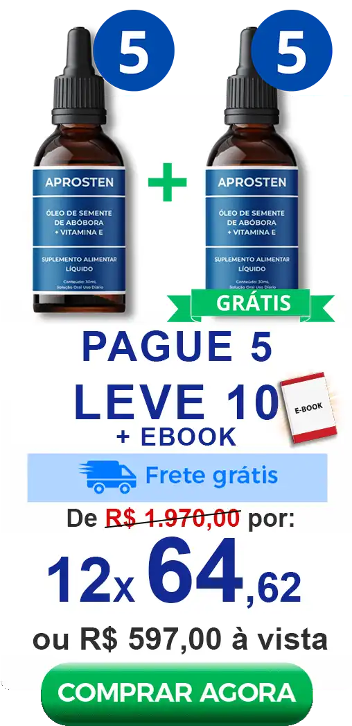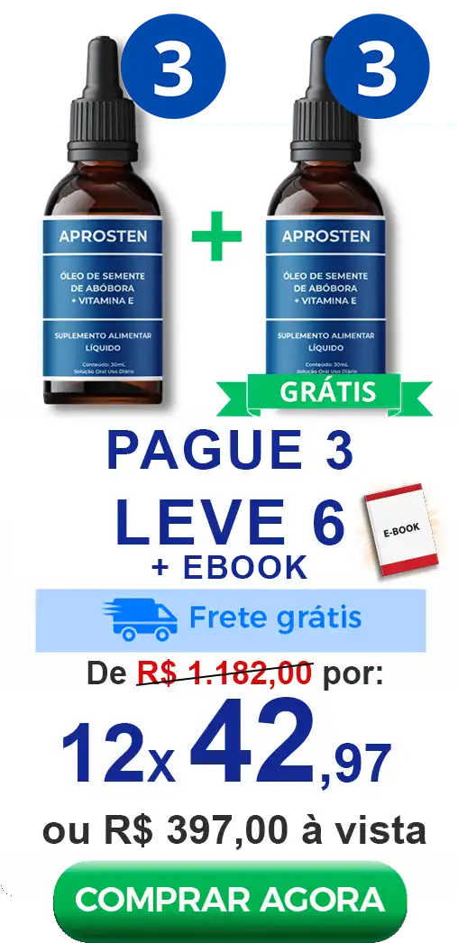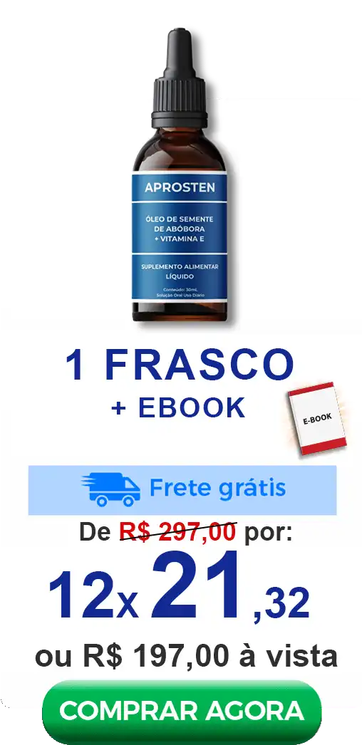 Aprosten apresenta fórmula natural e não apresenta efeitos colaterais. O produto é indicado para homens acima dos 30 anos com sintomas de próstata ou que deseja prevenir o câncer de próstata